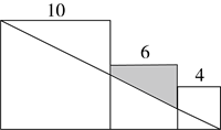 15. 边长分别为10,6,4的三个正方形拼接在一起,它们的底边在同一直线上(如图),则图中阴影部分的面积为_______.