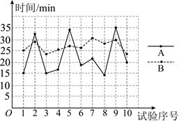 B线路所用时间 | 25 | 29 | 23 | 25 | 27 | 26 | 31 | 28 | 30 | 24 |