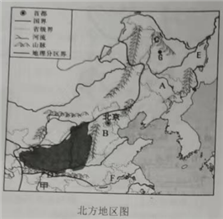 47.读我国“北方地区图”,回答问题。(每空1分,共7分)
