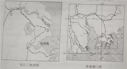 48.读“长江三角洲图”和“香港澳门图”,回答问题。(每空1分,共6分)