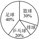 C. 最喜欢足球的学生为40人 D. “排球”对应扇形的圆心角为![]()