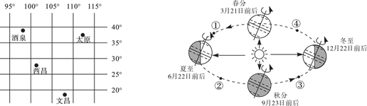 7.太阳直射点所在半球纬度越高的地区昼越长,据此可判定,5月30日四大卫星发射中心昼最长的是