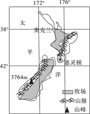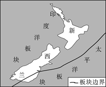 (2)新西兰位于板块交界处,地壳运动活跃(2分)