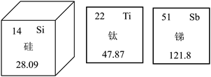C. 钛的核外电子数为22 D. 锑的原子序数为51
