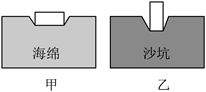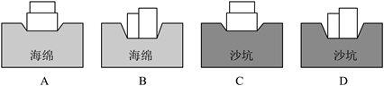 (1)谁的压力大______,谁的受力面积大______ ;(选填“海绵的大”“沙坑的大”“两个相等”)