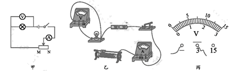 (6)思考乐小白同学在电路连接正确后,闭合开关,小灯泡亮了一下之后就熄灭,电流表无示数,电压表有示数,请在图丙中,画出电压表指针指的位置。(用带箭头的线段表示)( )