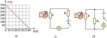19. R是一个随推力F变化而变化的电阻,F与R的关系如图甲所示。现有如图乙,丙的两个电路,