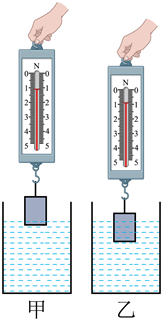 的圆柱体浸入水中,改变其浸入水中的体积,观察弹簧测力计示数的变化,如图所示。图甲中,圆柱体有