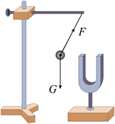 18. 将一个正在发声的音叉移近悬挂的泡沫塑料小球,当两者接触时,可观察到小球被弹开的现象,如图所示,请画出此时小球的受力示意图。