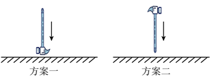 17.小明在参加学校组织的社会实践活动中,使用锤子时发现锤头松动了,于是他想将锤头套紧在锤柄上,老师提供了如图所示的两种方案供他选择。如果你是小明,你会选择哪种方案?并解释其中的道理。
