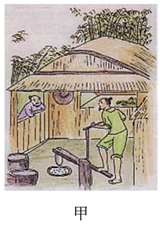 踩横木的B点,使A端升高,然后将脚移开,A端的碓头在重力的作用下向下运动撞击在谷物上,将谷物砸开。请回答下列问题: