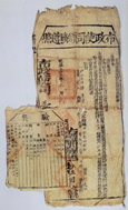 C. 北宋纸币铜版拓片 D. 清代开荒执照