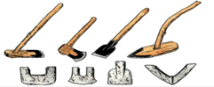 A. 河姆渡遗址出土的陶钵 B. 春秋时期铁制农具
