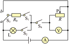 ④. b ⑤. 电压表示数恰为U ⑥. R0