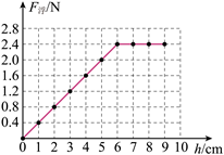 物块下表面所处深度h/cm | 0 | 1 | 2 | 3 | 4 | 5 | 6 | 7 | 8 | 9 |