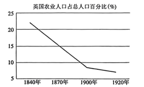 19. 下图为1840-1920年英国农业人口变化示意图,导致图中所示变化出现的主要原因是( )