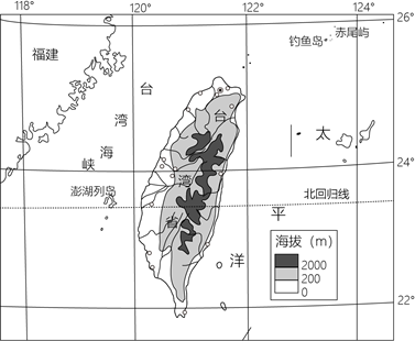 (2)从图中纬度位置来判断,台湾岛的南部属于______带(温度带);受海陆热力性质差异的影响,台湾岛______气候显著。