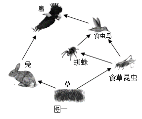 (2)若要构成一个完整的生态系统,图一中还缺少的生物成分是______。其中食虫鸟和蜘蛛的关系是______。