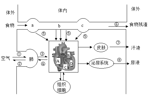 (5)能将人体组织细胞产生的尿素排出体外的途径有______(填数字)。