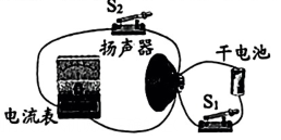 7.将扬声器、电池和电流表等元件连成如图电路。断开
