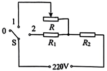 当开关S接1,滑片在最左端时,可变电阻R达到最大阻值,与