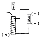 电磁铁下端磁极 1分 电源的正、负极 1分 磁感线方向 1分 |