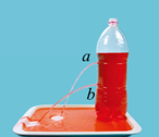 17. 如图所示,水能从a、b两个相同的小圆孔中喷出,说明液体对容器的___________有压强;b孔中的水喷得更远。说明液体内部的压强随着深度的增加而___________;此时,用手封住瓶口(水面高于a孔)。能够观察到小孔___________(选填“ab”、“a”、“b”或“都停止”)持续向外出水。