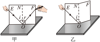 (4)完成实验后,小飞利用图甲所示装置探究光的反射规律。白色硬纸板ENF垂直于水平放置的平面镜,法线ON垂直镜面,使一束光贴着纸板沿 EO射到O点,反射光线沿 OF射出,当入射光线远离法线时,反射光线将___________(选填“靠近”或“远离”)法线;如图乙所示。把纸板NOF向后折,在纸板上看不到反射光线,由此初步得出: 反射光线、入射光线、法线在___________平面内。