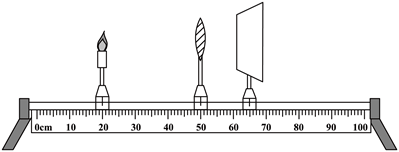 (1)小飞按下图安装好器材,点燃蜡烛,调整___________、凸透镜(f=10cm)、光屏三者的中心在同一高度。
