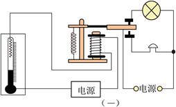 24. 某温度自动报警器的原理图如图所示。电磁铁上端为N极,在水银温度计中封入一段金属丝,当温度低于设定温度时,安全指示灯常亮;当温度达到设定温度时,安全指示灯熄灭,电铃发出报警信号。请在括号中标出电源的极性(用“+”或“-”表示), 并在虚线框内填入电铃(