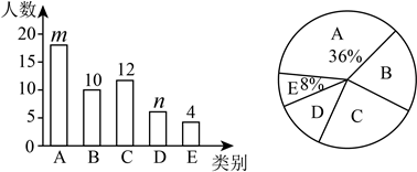 19. 打造书香文化,培养阅读习惯,崇德中学计划在各班建图书角,开展“我最喜欢阅读的书篇”为主题的调查活动,学生根据自己的爱好选择一类书籍(A:科技类,B:文学类,C:政史类,D:艺术类,E:其他类).张老师组织数学兴趣小组对学校部分学生进行了问卷调查,根据收集到的数据,绘制了两幅不完整的统计图(如图所示)
