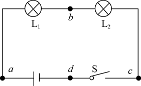 9.如图所示,开关S闭合时,小灯泡L1、L2都不亮,用一段导线的两端接触a、b两点时两小灯泡都不亮;接触b、c两点时,两小灯泡也不亮;接触c、d两点时,两小灯泡都亮。对此,下列判断中可能的是( )