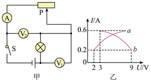 12.如图甲所示,电源电压恒定,闭合开关S后,将滑动变阻器的滑片从最右端移至灯正常发光的位置,此过程中电流表示数与两个电压表示数的关系图像如图乙所示。下列说法正确的是( )