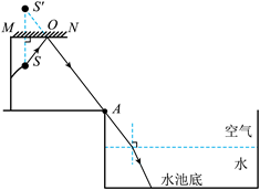 18.如图所示,水池边有一路灯S,路灯上方有一平面镜
