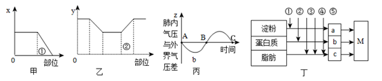 D.若丁中①一⑤表示消化液,则④和⑤表示肠液和胰液,发挥作用的场所都是小肠