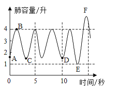 ①F点的数值就是该同学肺容量的最大值 ②AB段表示吸气过程