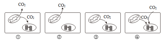 (4)植物在开花结果期,茎叶会生长旺盛,有利于植物进行___________作用;该作用的原料之一是二氧化碳(C02),她查询了相关资料,知道不同条件下,植物叶肉细胞中二氧化碳的四种不同转移途径(下图),该图___________(填序号)中的叶肉细胞可能处于黑暗条件下。