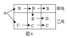 (4)生物是不断进化发展的。比较分析图4(某群岛上物种的进化),A物种进化为B和C两个物种,是因为甲岛和乙岛的环境不同,导致__________的方向不同;D和C两个物种之间,最可能形成__________关系。