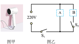 (2)如图乙为电吹风的内部电路简图,通过开关S1和S2实现冷风和热风两挡功能,电热丝应该接在图中______(选填“A”或“B”)位置;