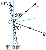 21.航关员舱外作业时,宽厚的航天服限制了他的视野,为了看清胸前的操作面板,可以通过手腕处的小镜子(如图甲)进行观察。乙图中A点代表航天员的眼睛,B点代表胸前某一按钮,C点是小镜子的位置,请你根据反射光路图在C点准确画出镜面并标出镜面与竖直面的夹角。(保留作图痕迹)