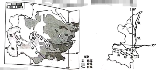 C. 地势西北高东南低 D. 棉花主要分布在河流沿岸