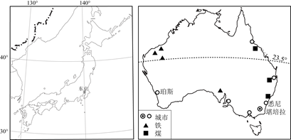 读日本和澳大利亚简图,结合所学知识,完成下面小题。