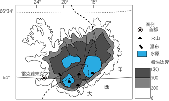 【详解】由图可知,冰岛位于北极圈以南,没有极昼极夜现象,①错误;冰岛主要位于高纬度,气温低,冰原广布,②正确,③错误;冰岛地处板块交界地带,多火山地震,④正确。故C正确,ABD错误。故选C。