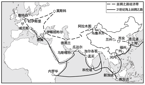 (1)甲、乙均是“一带一路”的核心区域,两区域最为突出的地理位置特征是:甲____乙____。