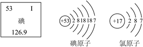 C. 碘元素和氯元素化学性质相似 D. 碘元素和氯元素 的本质区别是原子的质子数不同