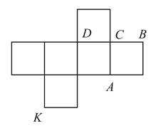 7. 如图是一正方体的表面展开图.将其折叠成正方体后,与顶点K距离最远的顶点是( )