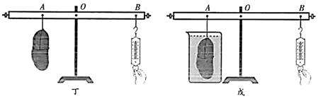 ②将石块浸没于盛水的烧杯中,竖直拉动测力计使杠杆再次水平平衡,如图戊所示,记录此时弹簧测力计示数为