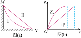 3. 如图(a),从高处M点到地面N点有Ⅰ、Ⅱ两条光滑轨道。两相同小物块甲、乙同时从M点由静止释放,沿不同轨道滑到N点,其速率v与时间t的关系如图(b)所示。由图可知,两物块在离开M点后、到达N点前的下滑过程中( )