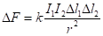 、电流大小分别为I1和I?的平行直导线间距为r时,相互作用力的大小可以表示为