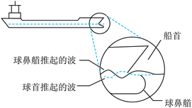 8. “球鼻艏”是位于远洋轮船船头水面下方的装置,当轮船以设计的标准速度航行时,球鼻艏推起的波与船首推起的波如图所示,两列波的叠加可以大幅度减小水对轮船的阻力。下列现象的物理原理与之相同的是( )